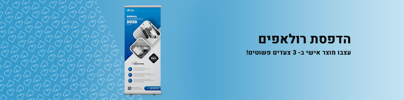*המחירים של הדפסת רול אפ אינם כוללים מע"מ, עיצוב גרפי ומשלוח כרוכים בתוספת תשלום.